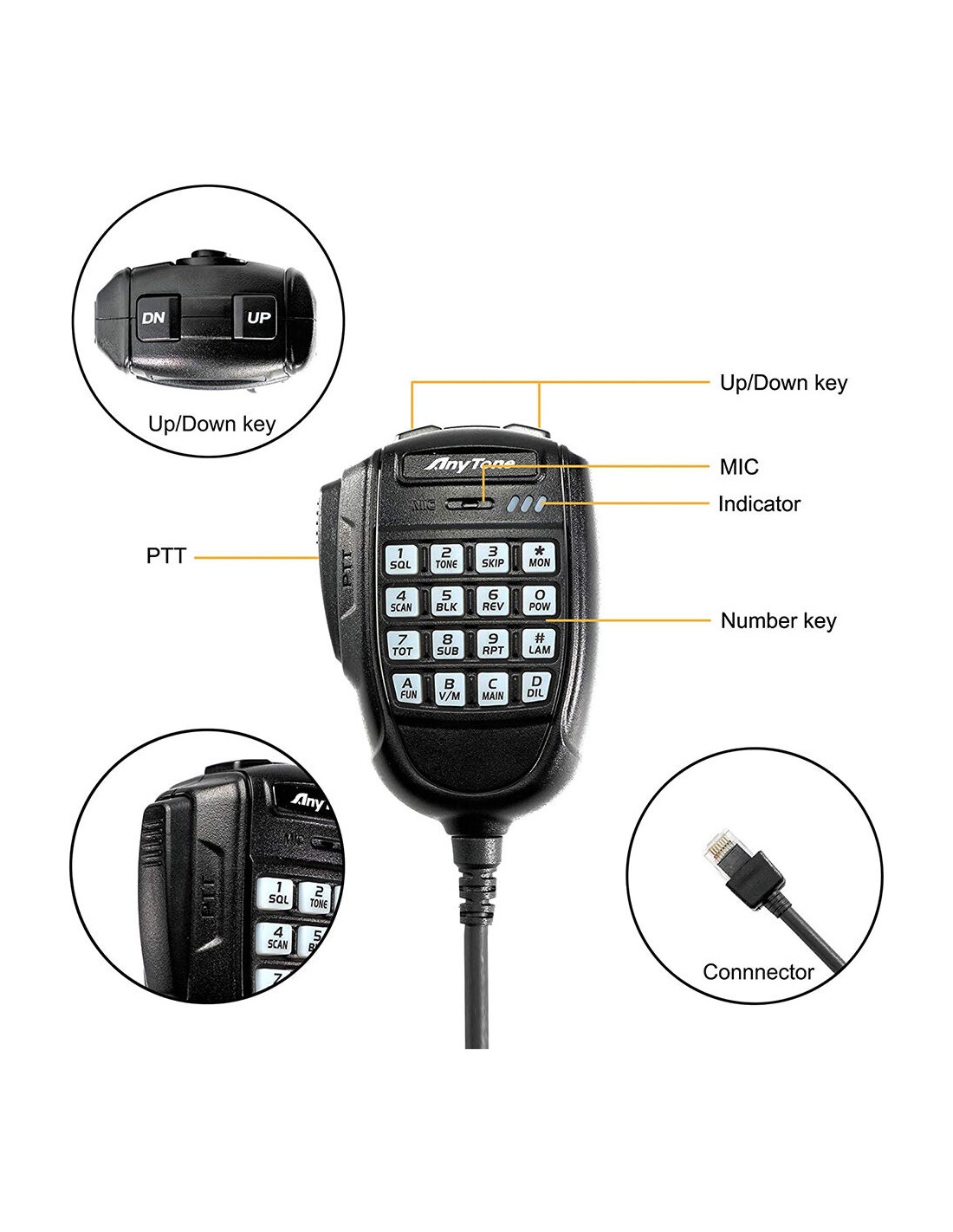 ● Main unit and microphone key lock function;